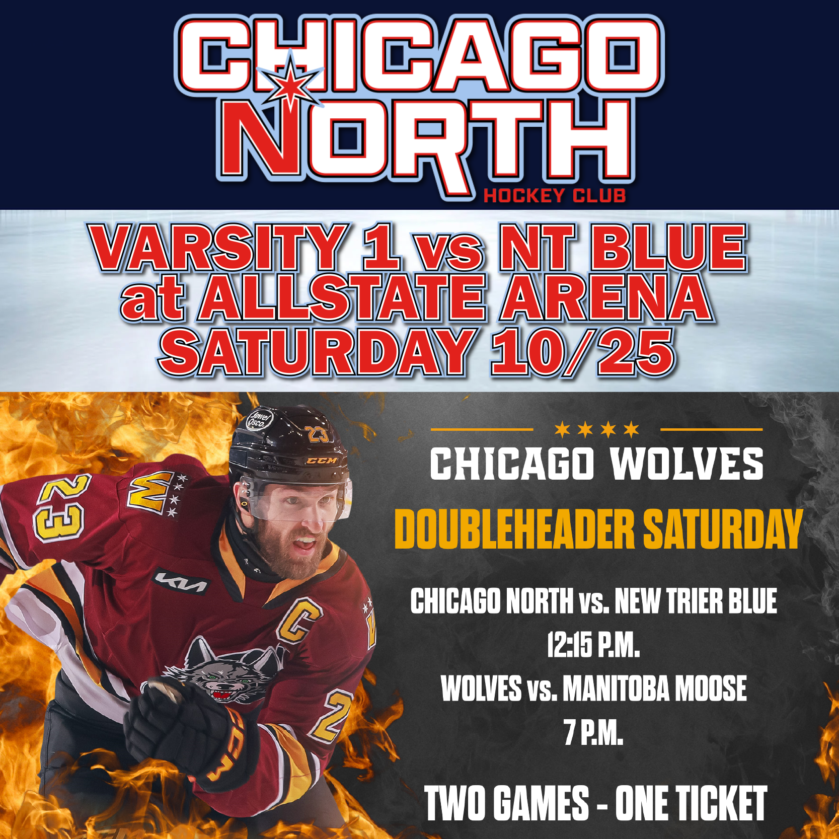 The IHSHL North Central Division matchup will be Saturday, Oct. 25 at 12:15 P.M. (doors open at 11:45 A.M.) at Allstate Arena. Tickets for the game include admission to the Wolves’ contest against Central Division rival the Manitoba Moose on Howl-O-Ween Night at 7 p.m. at Allstate Arena.